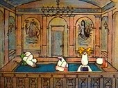 „Die Blitzfaust“InhaltSchwabhausen wird von einem heftigen Gewitter heimgesucht, unter dem die Burgruine Wackerstein, die über dem Ort thront, schwer leidet. Auch Kurt-Georg, Connie und Karle betrachten das Unwetter mit Sorge. Karle: „Jaja, au d'Natur muaß sich amol so richtig auskotza.“ Und Kurt-Georg kennt seinen Schiller: Kurt-Georg: „Die Lebenden ruf ich, die Toten beklag ich, die Blitze breche ich. Fulgura frango, wia da Lateiner secht.“ Aber natürlich kann auf Karle Latein:Karle: „Fulgura capio! Die Blitze fang ich. Kurt-Georg, des isch die Idee!“ Und so fährt die Firma Auberle gleich nach Ende des Gewitters zur Ruine Wackerstein, und Karle entwickelt einen Plan für einen riesigen Blitzableiter in Faustform, der die Blitze in einen unterirdischen Akkumulator leiten und so zu nützlicher Energie machen soll. Sofort macht sich die Firma ans Werk und baut, mit einigen kleineren Schwierigkeiten … Karle: „So ein Allmachtsbachel. Ein Rindviech, ein saudomms!“ … die Blitzfaust auf. Doch die Schwabhausener sind empört, und mit Gabeln und Sensen bewaffnet ziehen sie zur Ruine und demonstrieren gegen die Verschandelung der Landschaft. Sogar Gertrud demonstriert mit. Kurt-Georg: „Sauberle, Herr Auberle. Jetzt hemmer da Scheiß.“ Da kommt der Bürgermeister vorgefahren und rettet die Situation. Er erteilt nachträglich die Baugenehmigung und erklärt die Faust, die sich auch zur Hand ausstrecken kann, zum schützenswerten Kunstwerk. Bald wird der Faustturm zum beliebten Ausflugsziel. Und bei jedem Gewitter versorgt die Faust einen riesigen Tauchsieder mit Strom, sodass die Bergquelle damit geheizt und ein Thermalbad betrieben werden kann, das auch die Firma Auberle gern besucht. Kurt-Georg: „Ich hab das Fräulein Helen baden sehn, oh wie schön!“ Schwabhausen wird zum Kurort und darf sich fortan „Bad“ Schwabhausen nennen. Der Erfinderfirma aber endlich die verdiente Ehre zuteil: Sie bekommen ein Denkmal gewidmet. Bilder![]() Die Blitzfaust im Einsatz ![]() Die Schwabhausener sind nicht begeistert ![]() Der Bürgermeister vermittelt ![]() Das Bergquellwasser wird erwärmt ![]() Thermalbad ![]() Ein Denkmal für die Firma Auberle & Co. KG Letzte Änderung: 25. Februar 2007 (Seite erstellt) |